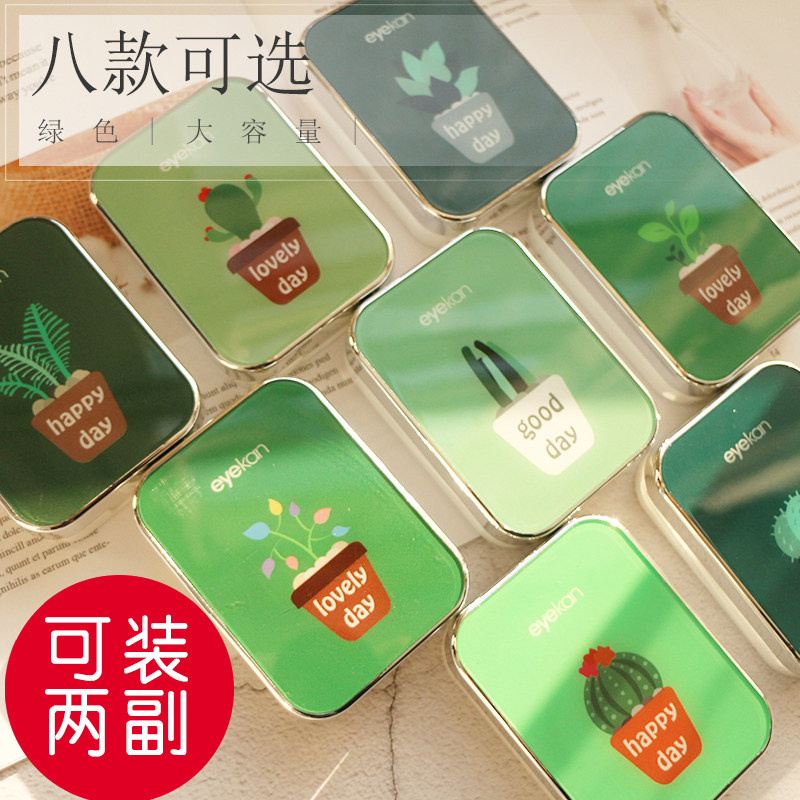 美瞳盒可爱简约卡通便携网红款隐形眼镜盒伴侣格盒多副装带镜子KW
