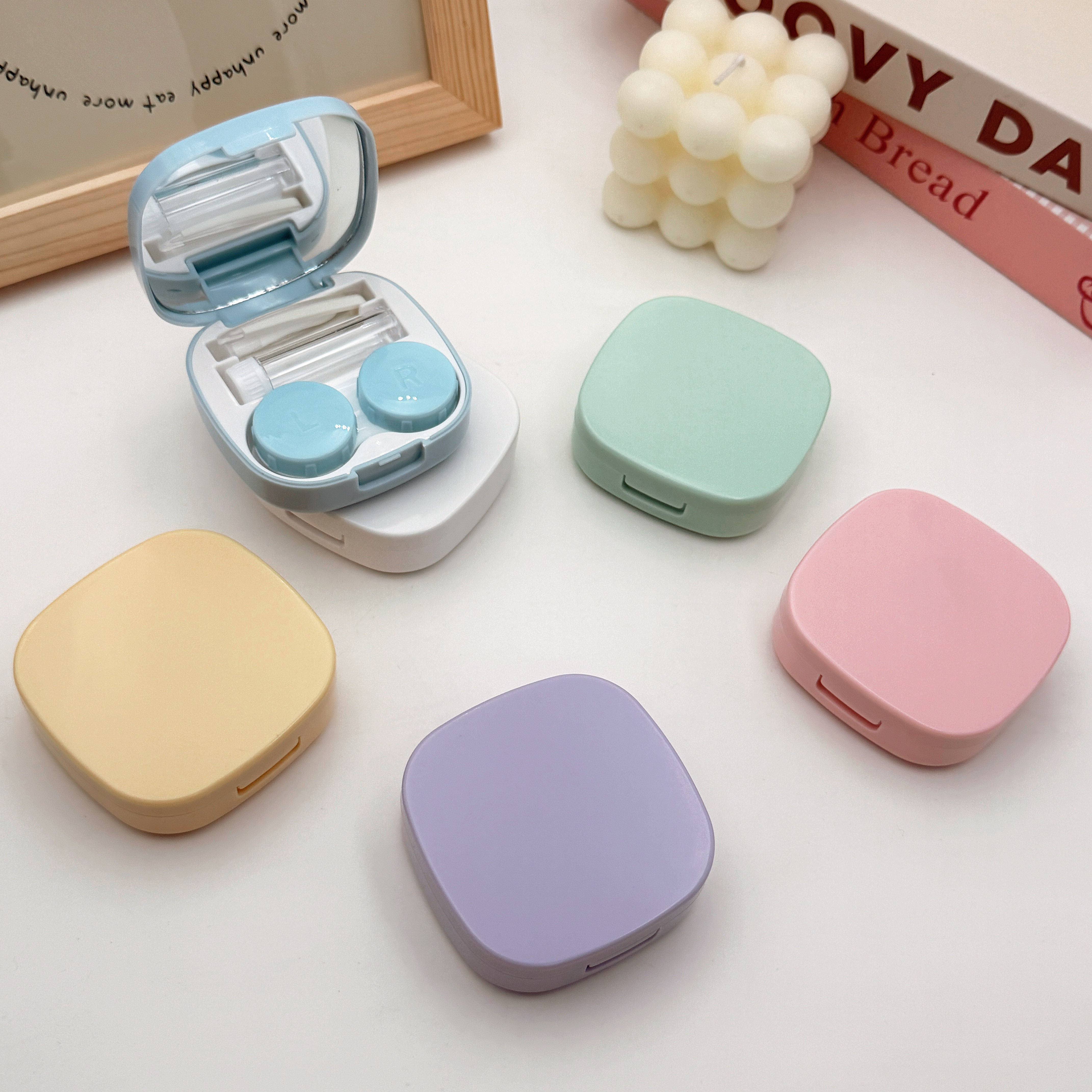 便携纯色隐形眼镜盒ins少女可爱美瞳盒子糖果色收纳护理盒zy