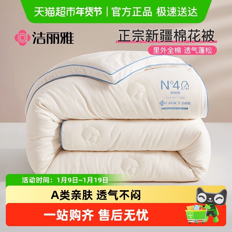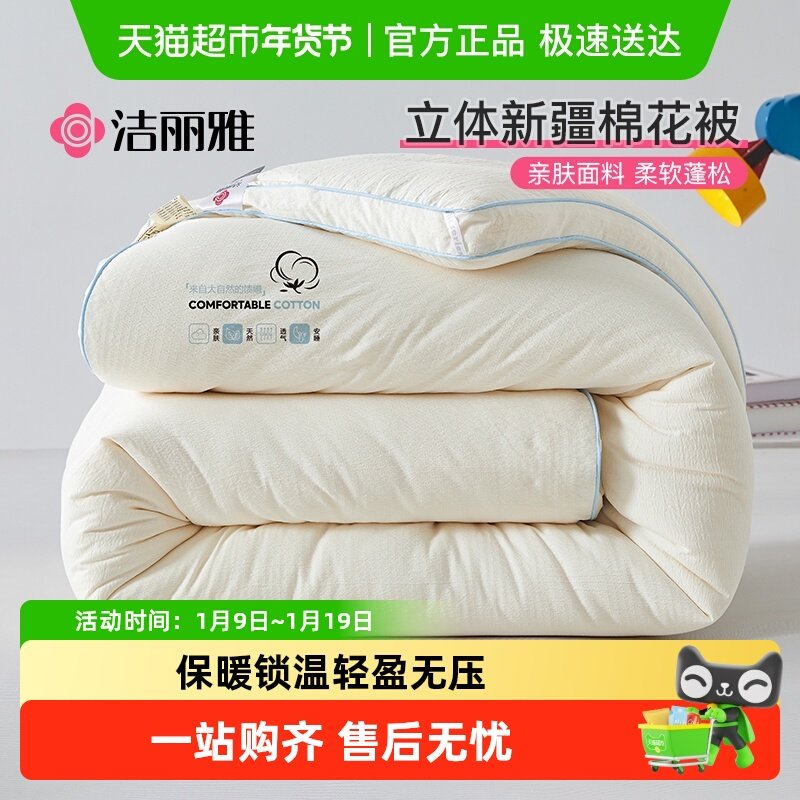 洁丽雅新疆棉花被子冬被冬季加厚保暖纯棉花被芯单人春秋棉絮棉被