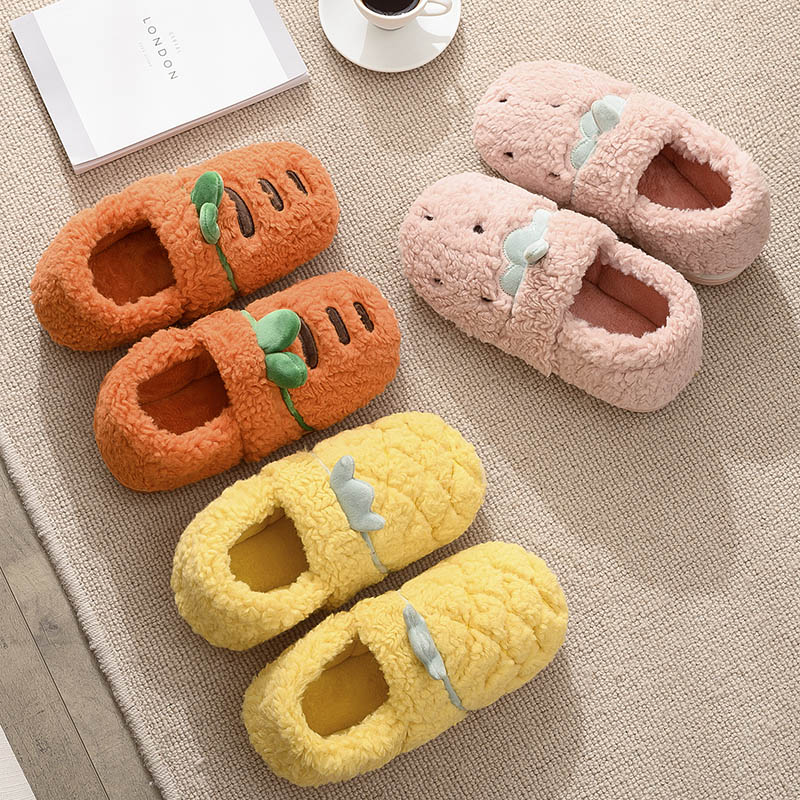 水果棉拖鞋女可爱冬季胡萝卜包跟家居毛毛保暖情侣厚底家用棉鞋男