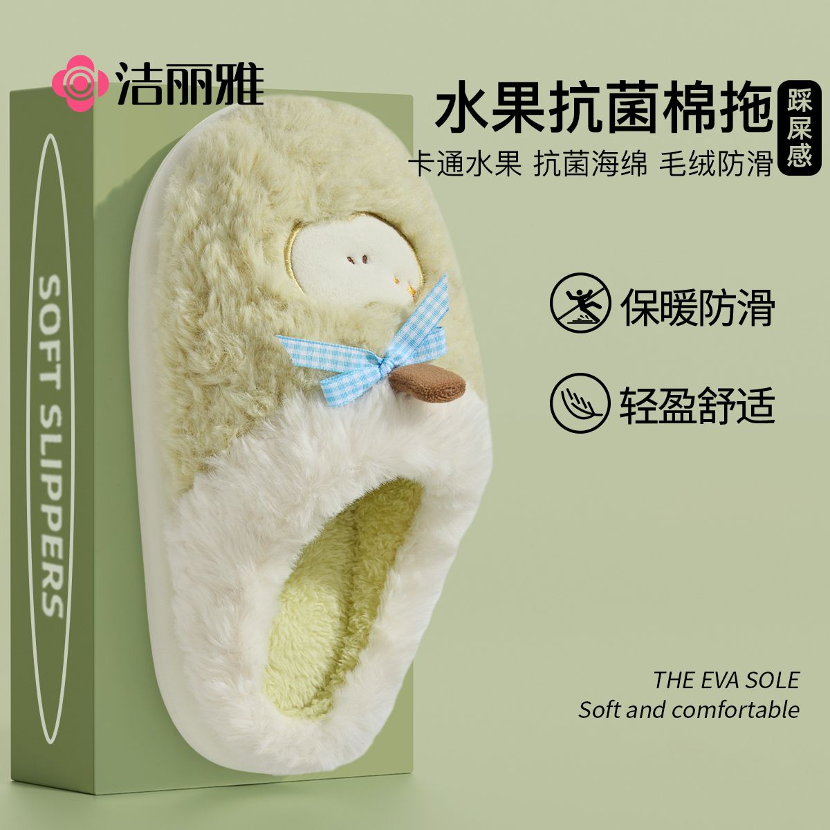 洁丽雅棉拖鞋女2025新款冬季抗菌水果卡通室内家居保暖防滑拖鞋男