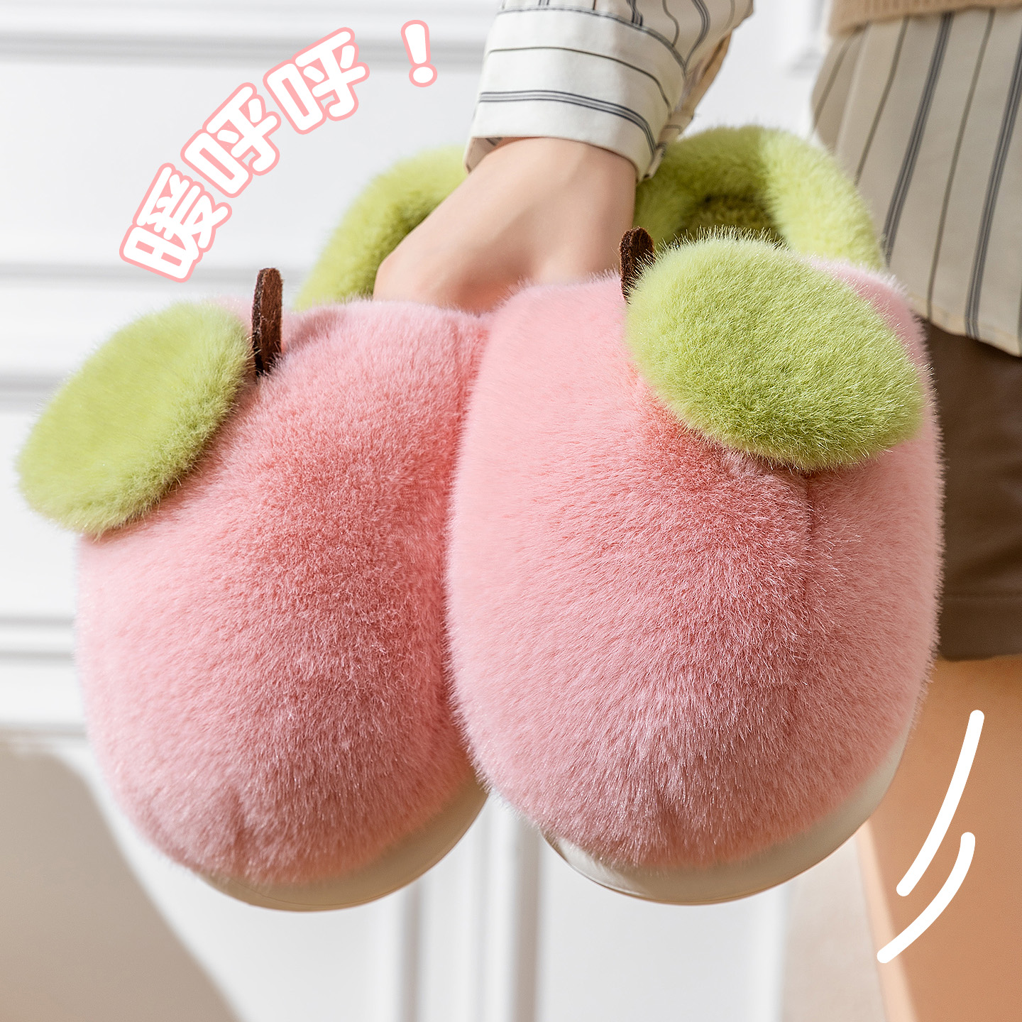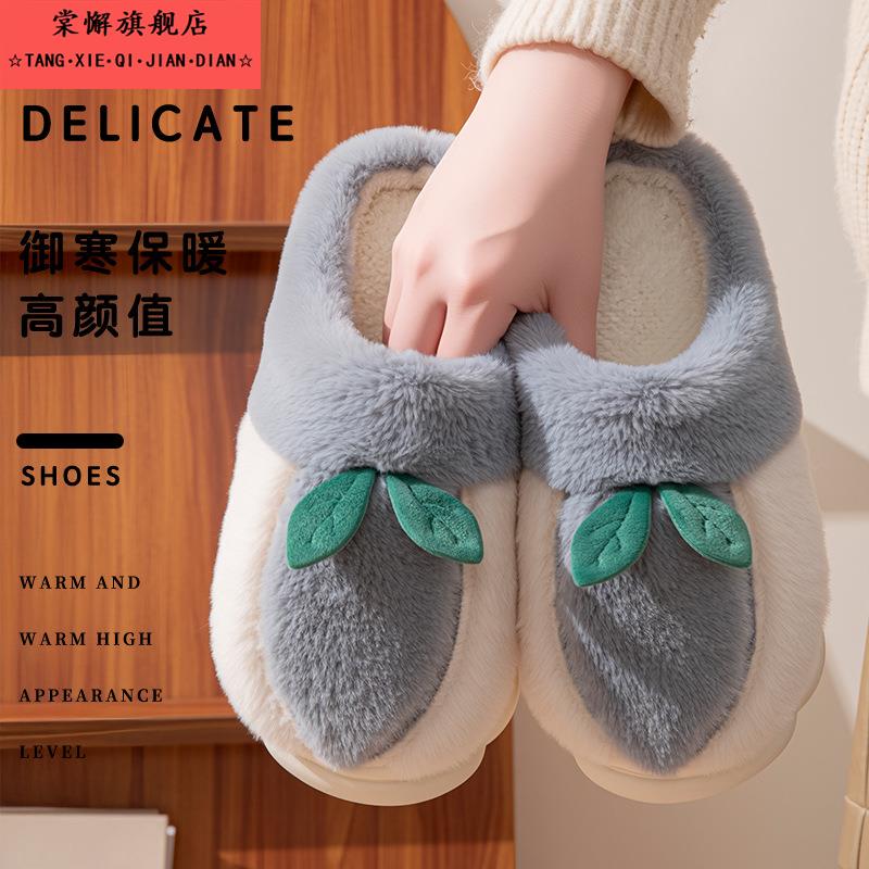 可爱水果桃子棉拖鞋女款秋冬季居家防滑学生宿舍舒适保暖毛绒拖鞋
