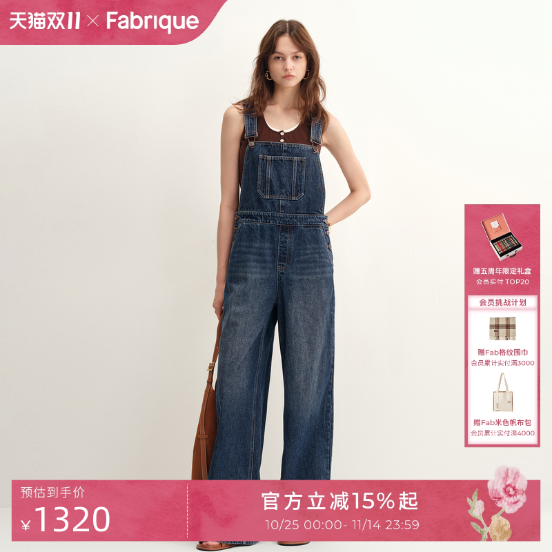 【张籽沐同款】Fabrique主角丹宁阔腿牛仔裤宽松背带裤女2025新款