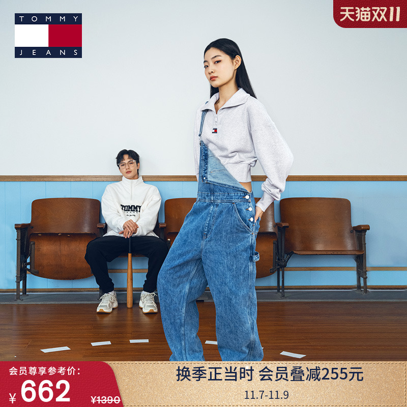 【工装阔腿】Tommy秋冬女美式复古大口袋蓝色直筒牛仔背带裤
