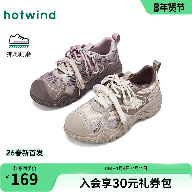热风厚底板鞋女鞋2026年春季新款运动休闲小白鞋户外百搭慢跑鞋子