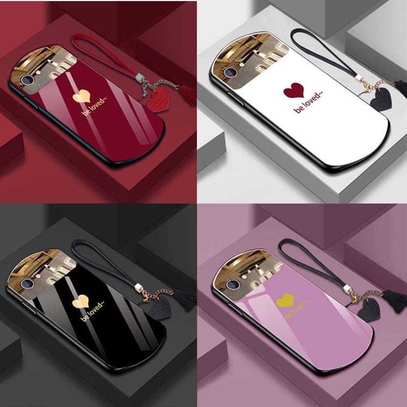 红色爱心适用苹果6手机壳iPhone6s椭圆6plus弧形6splus带镜子送流苏挂绳补妆镜网红男女镜面钢化玻璃潮牌新款
