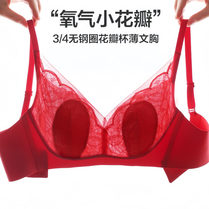 本命年内衣内裤套装女士红色文胸属蛇年圣诞结婚婚礼大红小胸聚拢