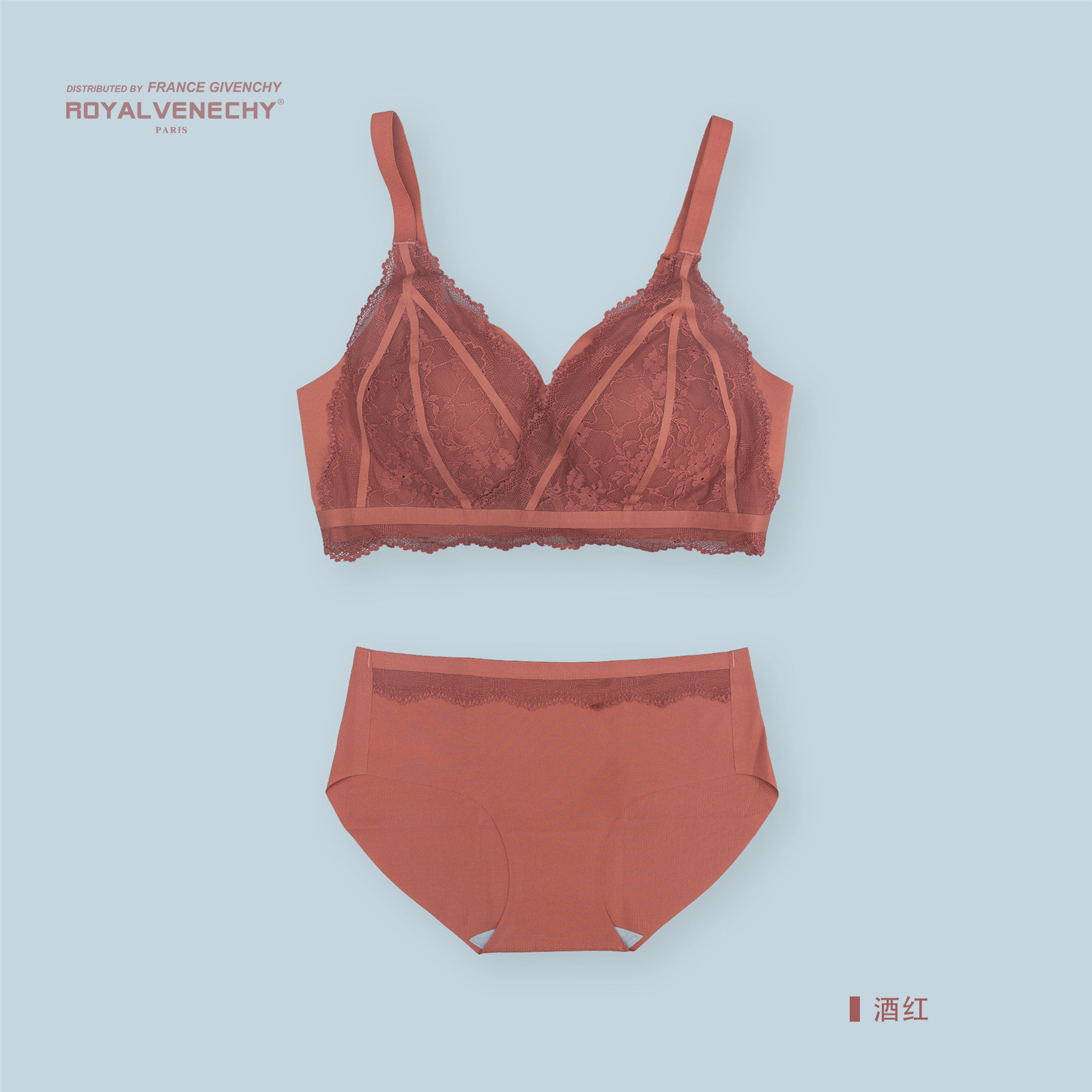 ROYALVENECHY皇家梵希女士内衣性感无钢圈法式蕾丝文胸内裤套装