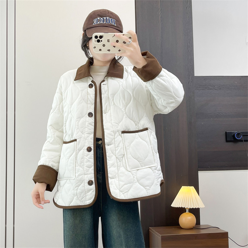 惠衣阁冬女衬衫款棉衣轻薄款棉袄韩版宽松休闲压线棉服外套可机洗