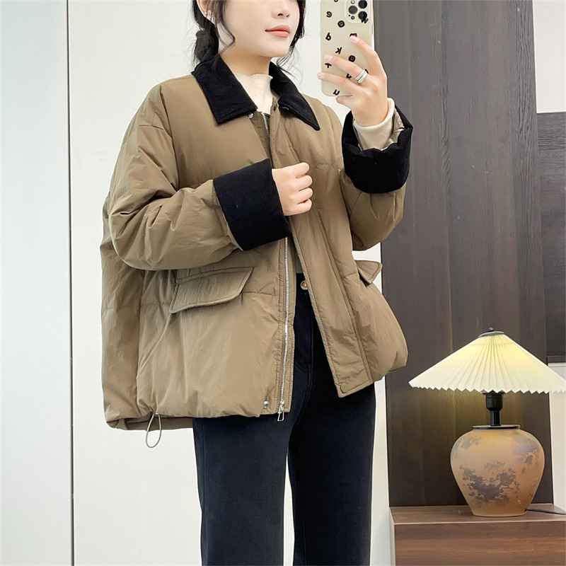 2024冬季新款设计感衬衫棉衣女休闲百搭加棉保暖拼接撞色长袖棉服