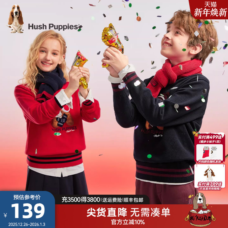 暇步士童装儿童针织衫25秋冬装新品男童休闲线衣圣诞节女童厚毛衣