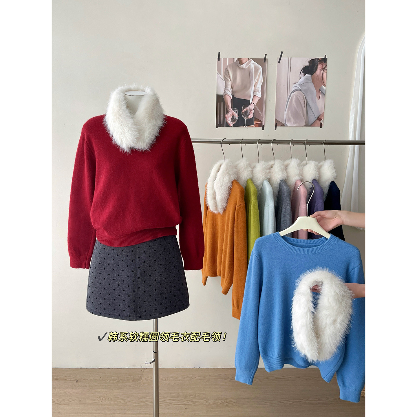 日韩系氛围感复古温柔毛线衣女秋冬百搭配毛领围巾针织衫两件套装