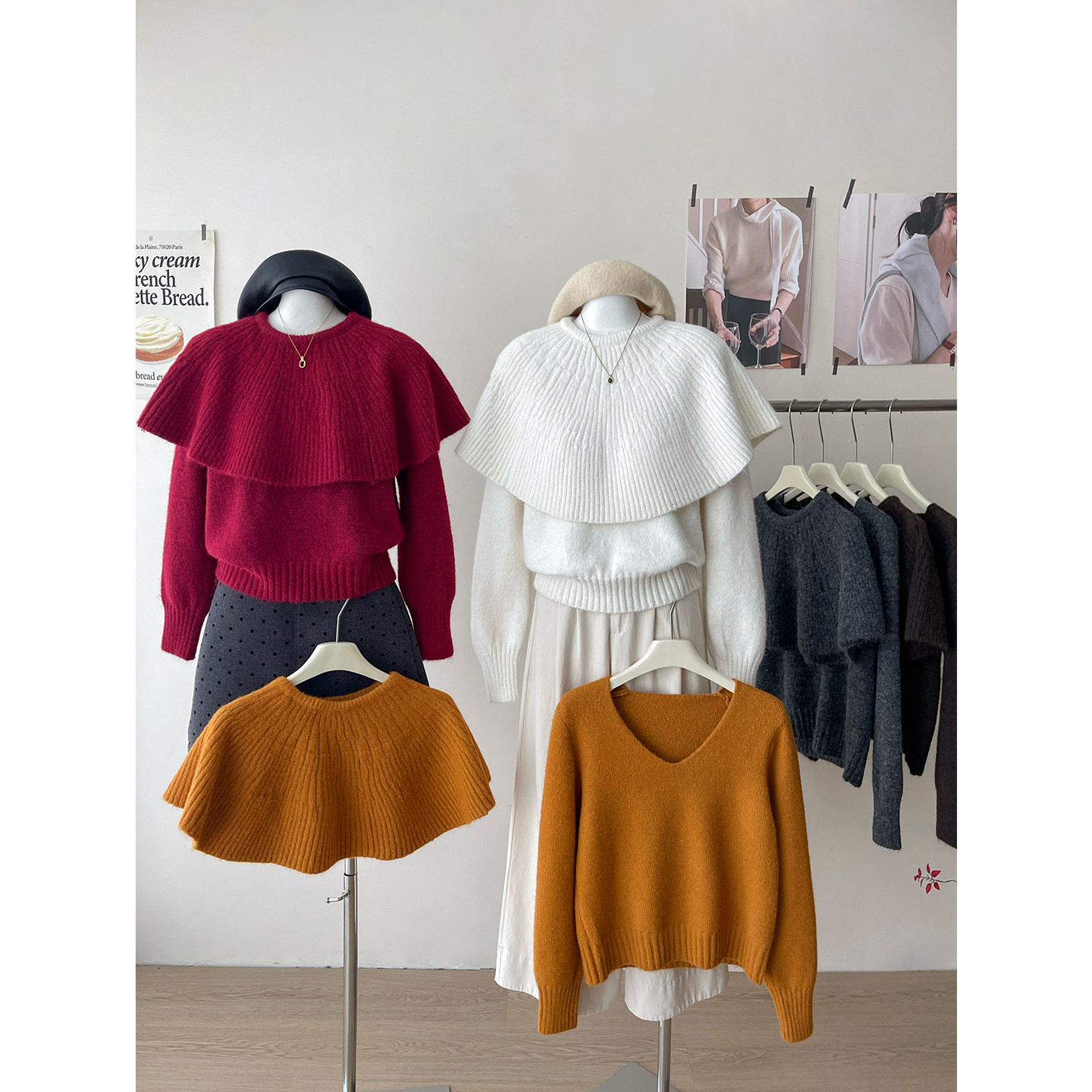 法式复古百搭配披肩斗篷毛线衣女秋冬洋气质针织衫慵懒风两件套装