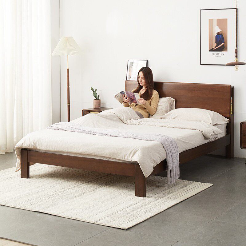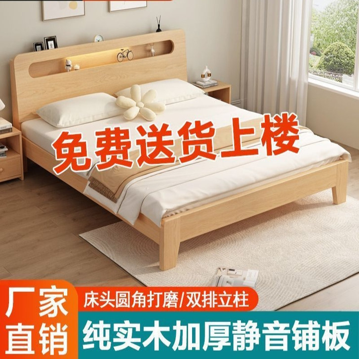 北欧实木板床家用简易床出租屋成人床主卧大床双人床可储物板式床