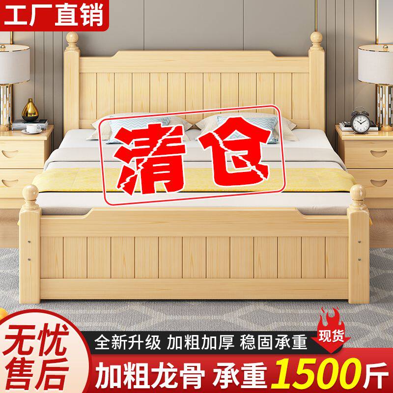 实木床松木床单人床双人床简约成人床儿童床简易床便宜1.5m1.8米