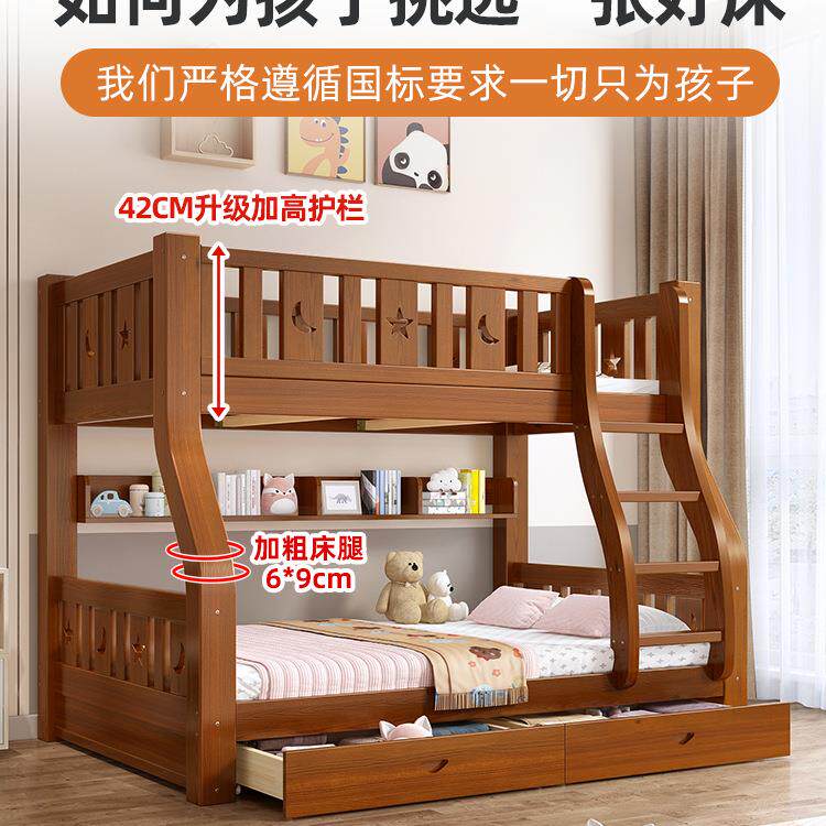 全橡加厚实木子母床床双层木上下床成人床高120低儿童床成人母子