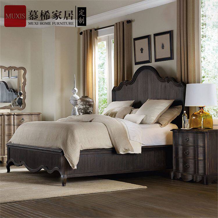 hooker胡克家具新古典美式实木雕刻双人床别墅主卧黑色成人床定制