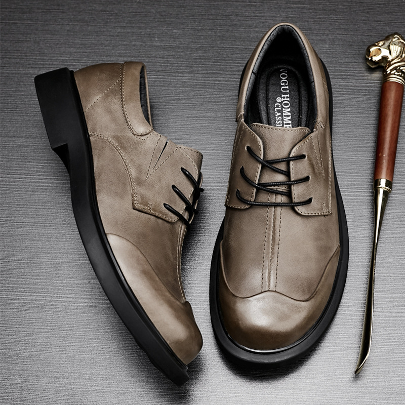 男鞋2025春季牛皮时尚休闲商务鞋青年系带百搭小皮鞋平底潮男鞋子