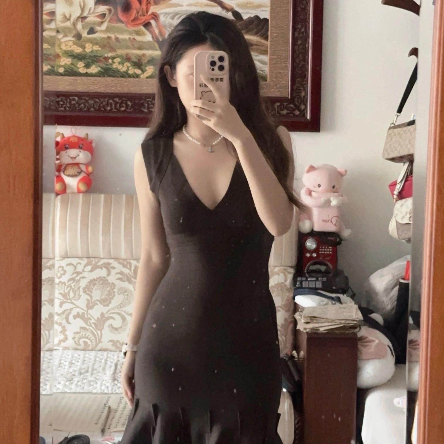 性感气质御姐风超低胸V领修身显瘦荷叶边裙显瘦包臀绷带裙 dress