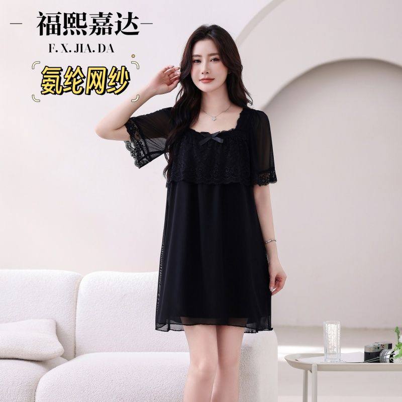 福熙嘉达睡裙女夏季新款性感甜美短袖蕾丝网纱超仙公主爆款家居服
