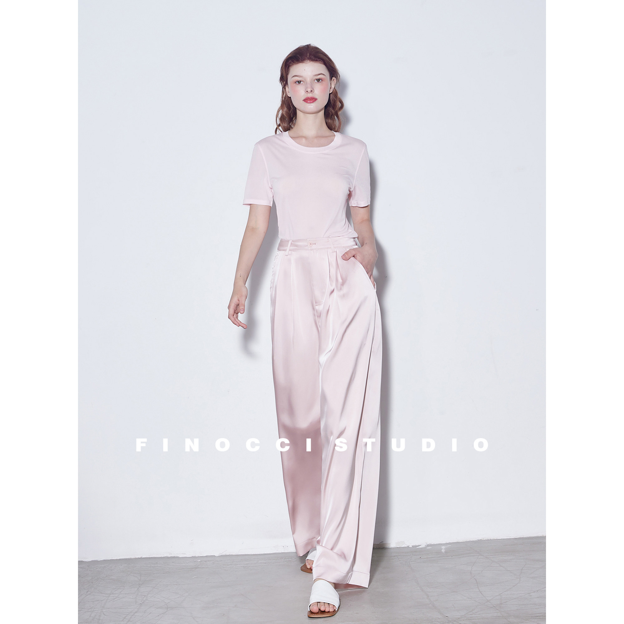 FINOCCI云柔裸感醋酸网纱超舒适隐约透视小性感百搭不出错圆领T恤