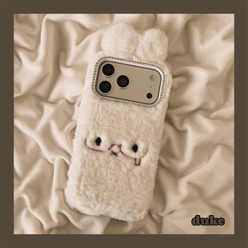 秋冬毛绒兔子耳朵适用iphone17Promax苹果16手机壳15可爱14软壳13