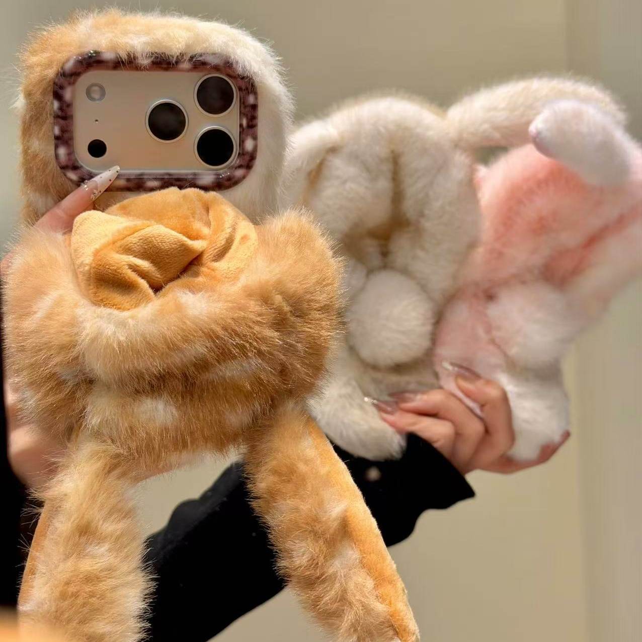 秋冬卡通可爱斑点兔子耳朵适用苹果17promax手机壳iphone17pro毛绒壳16pro女新款15全包防摔14保护套13超好看