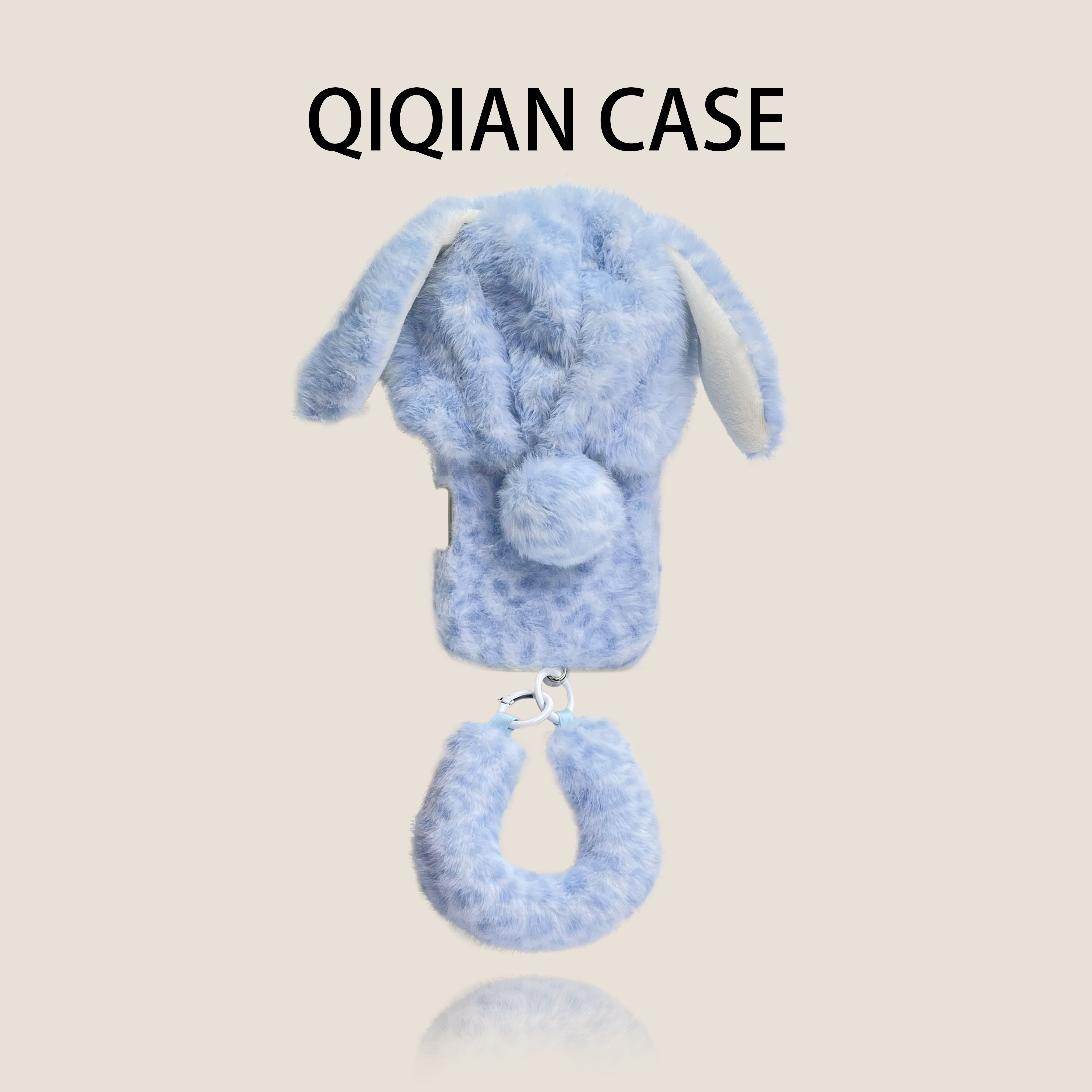 启乾 冬季新款豹纹兔蓝色耳朵帽子腕带iPhone17/16手机壳适用苹果15/14promax毛绒软壳链条挂绳可爱少女心ins