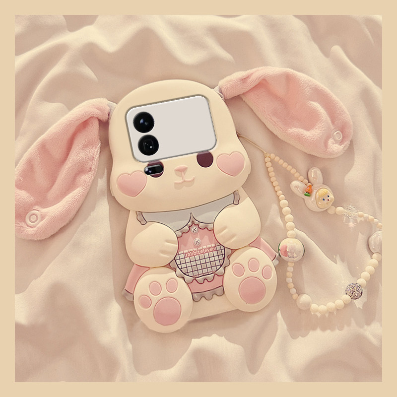 立体兔子耳朵适用苹果17promax手机壳华为pura80荣耀400pro小米15卡通vivos30毛绒opporeno14秋冬季x300硅胶p