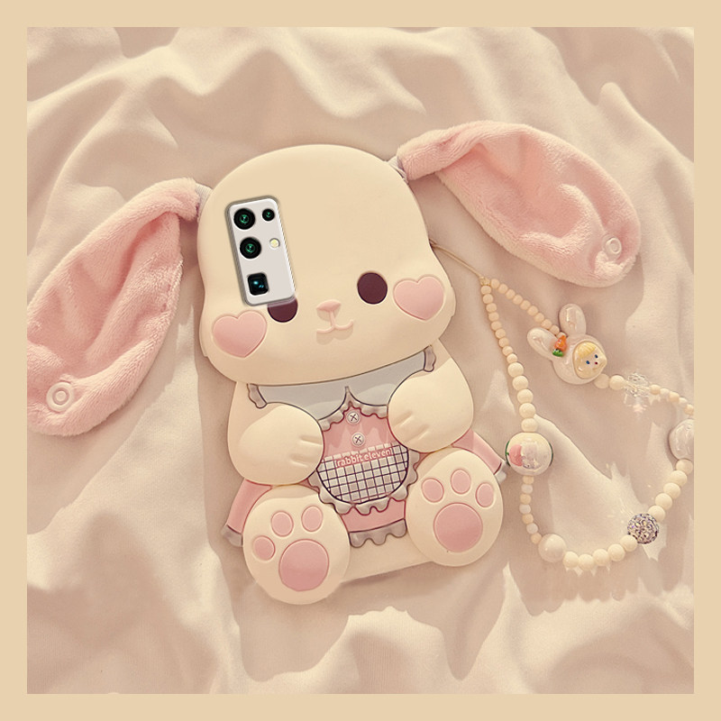 毛绒大耳朵兔子适用Mate70华为Nova13/12手机壳11/10/8/9/P40PRO+/Pura70可爱40畅享60麦芒30防摔80/P50/20