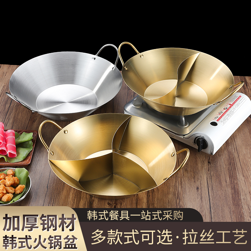不锈钢商用鸳鸯锅电磁炉专用涮火锅韩式部队地摊火锅加厚清汤锅具