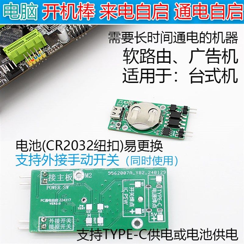 电脑开机棒台式路由器广告机服务器个人电脑停电来电自动开机模块
