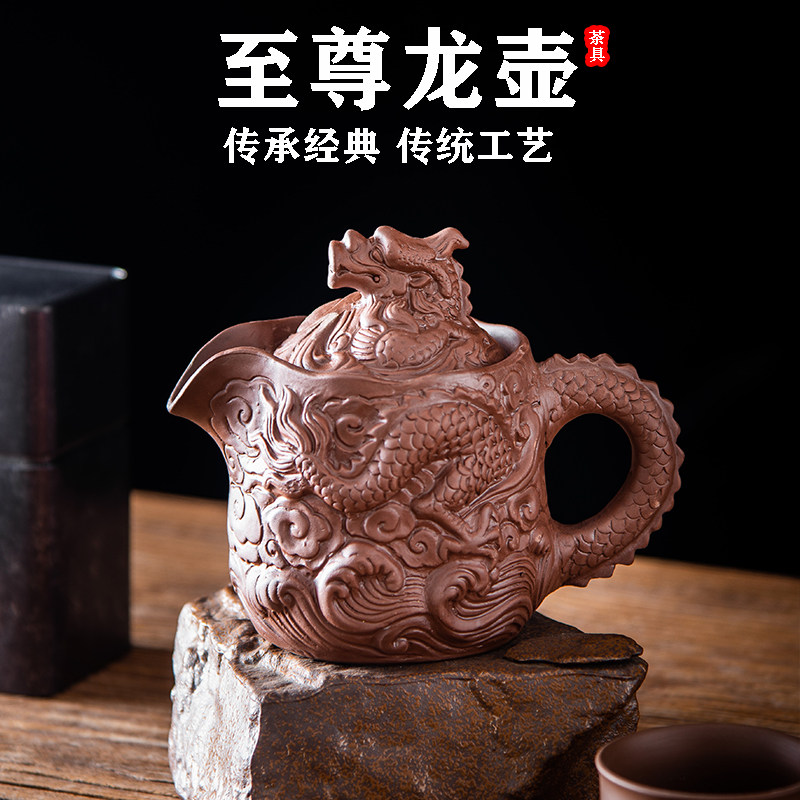 遇热变色原矿紫砂壶龙凤呈祥凤鸣壶半手工大容量家用功夫茶具套装