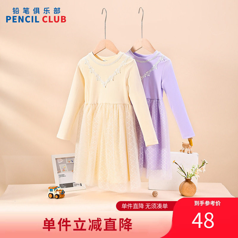 铅笔俱乐部童装2025年秋装新款女童连衣裙中大童拼接网纱打底裙子