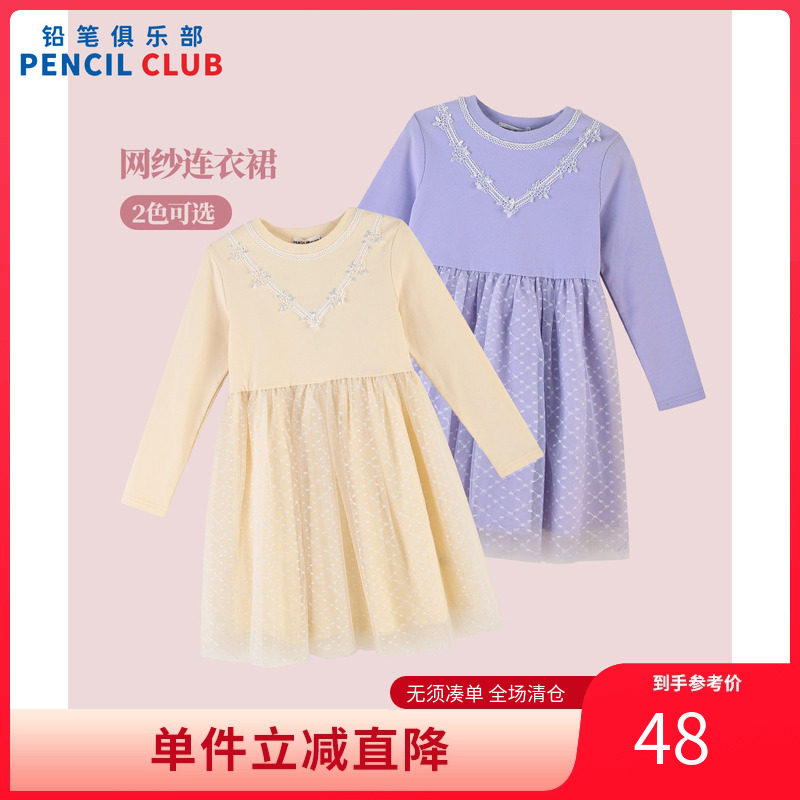 铅笔俱乐部童装2025年春秋新款女童连衣裙中大童拼接网纱打底裙子