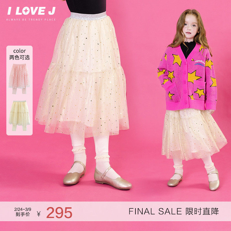 ILOVEJ童装冬季新款女童网纱打底裙裤半身裙长裙子/JWWLE03