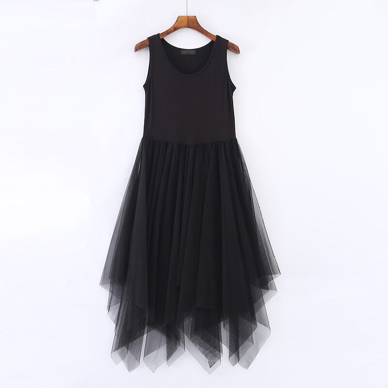 黑色吊带连衣裙女春秋外穿小个子网纱长裙内搭打底显瘦不规则裙子