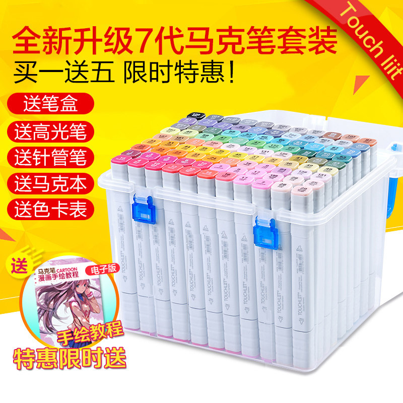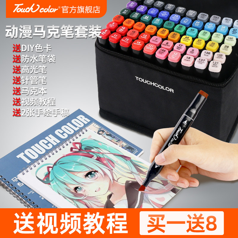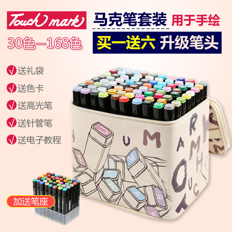 正品Touch马克笔动漫学生美术168色套装便宜手绘水彩笔无毒油性双头80色绘画笔儿童涂鸦卡通简约双头水彩笔