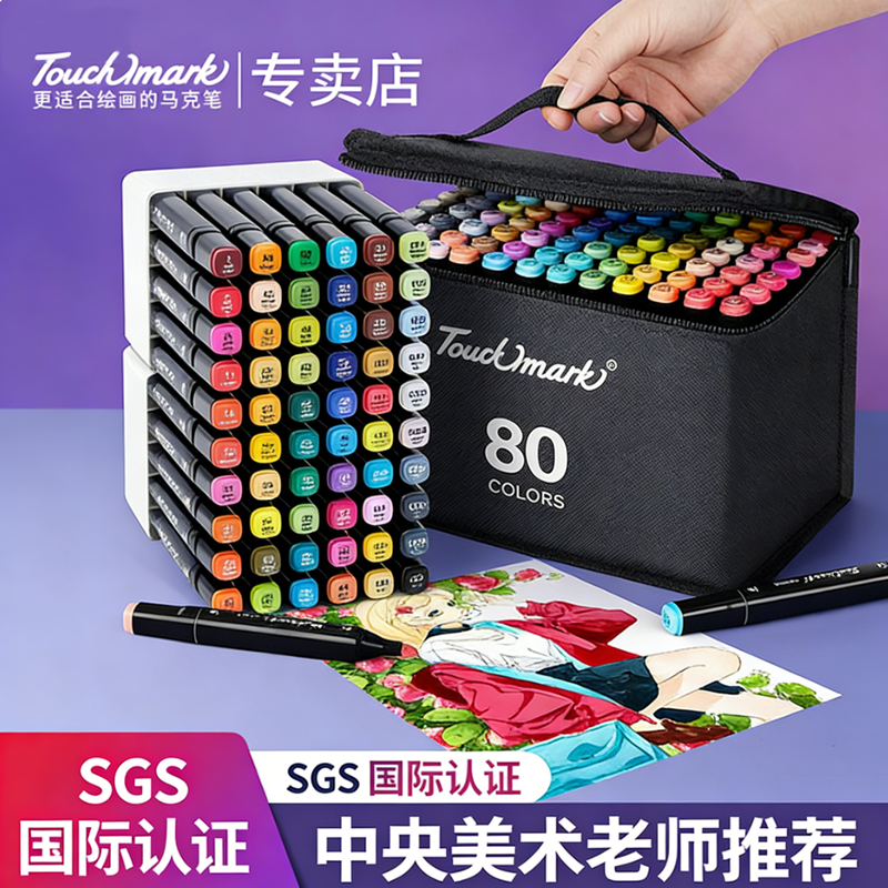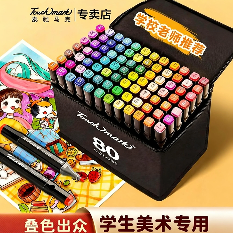 正品马克笔套装touch美术生专用小学生全套水彩笔双头油性60/80色漫画动漫不透色速干可加墨初中生肤色色彩笔