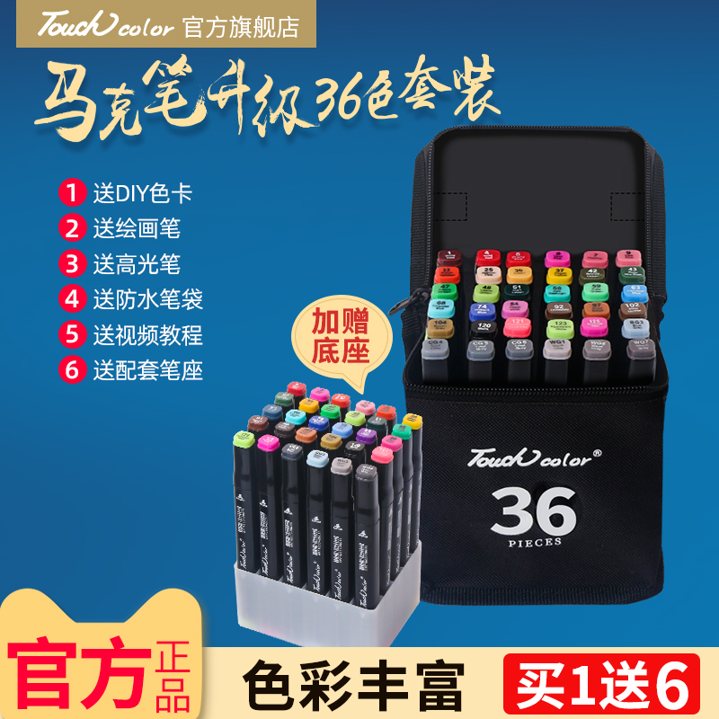 马克笔套装touch正品36色学生用动漫设计手绘酒精油性双头肤色初