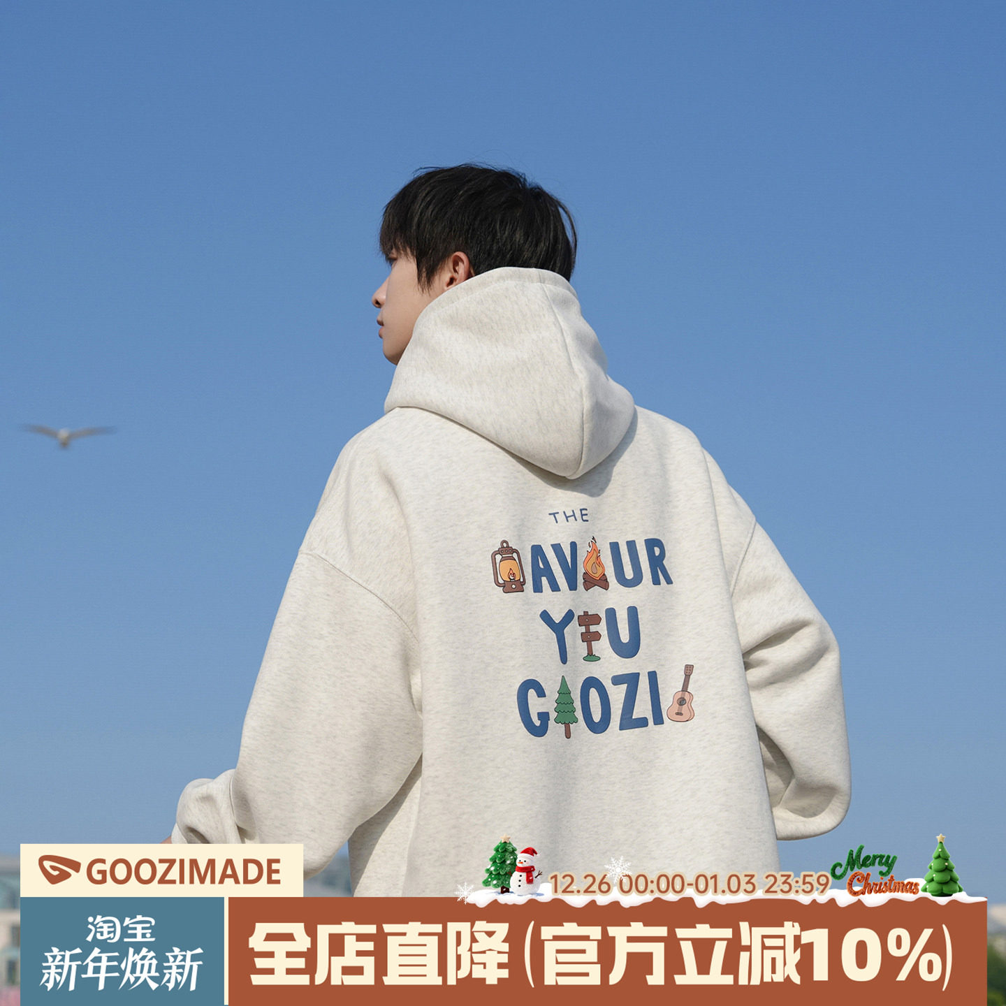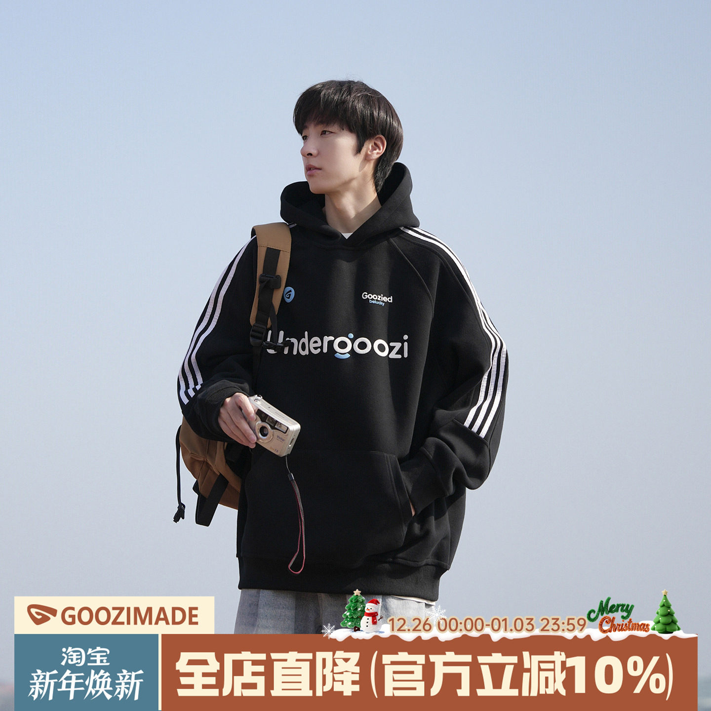 GOOZI MADE 420g重磅印花连帽卫衣男秋冬美式潮牌三条杠帽衫外套