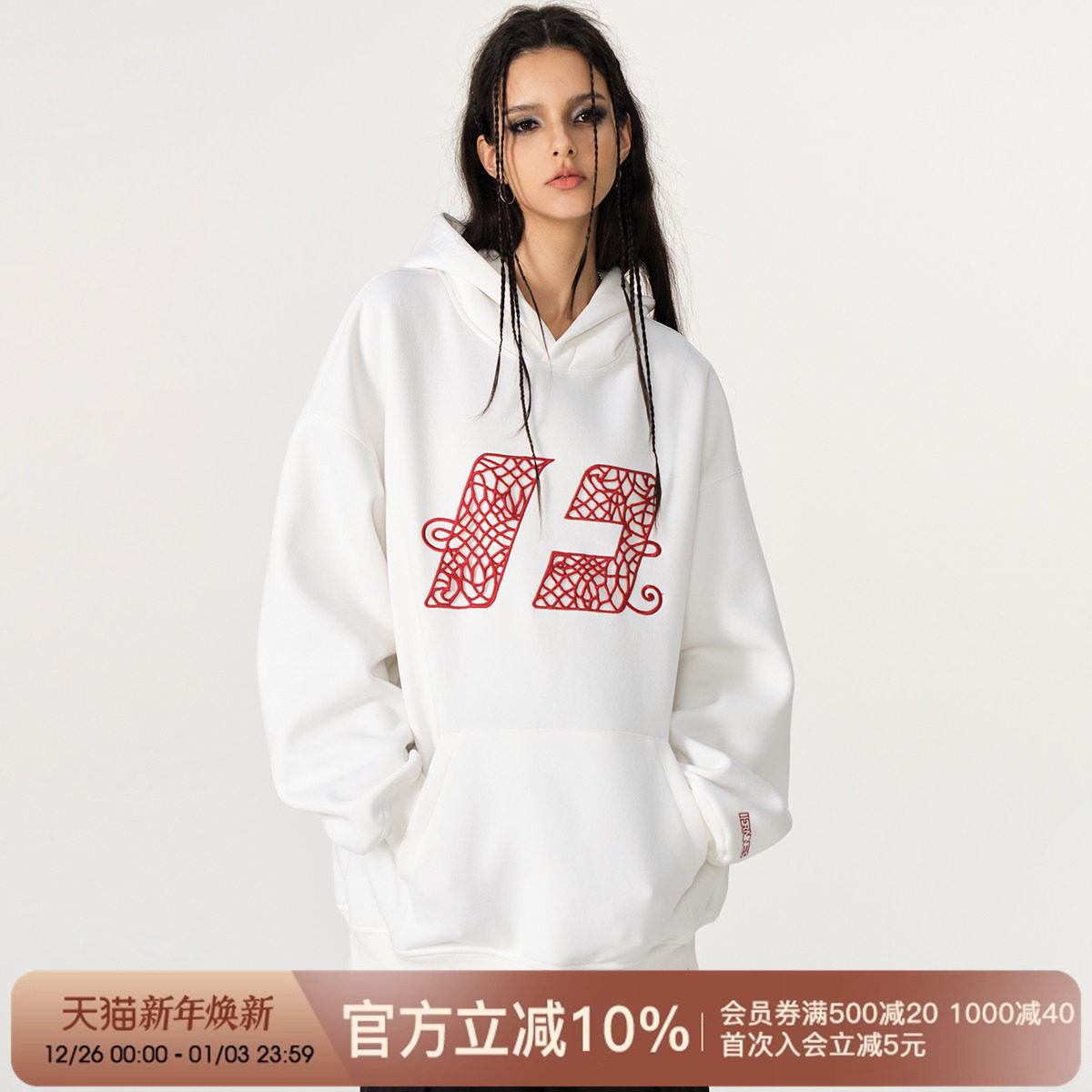 FORNINES国潮中国结新年刺绣重磅卫衣男秋冬加绒情侣连帽休闲外套