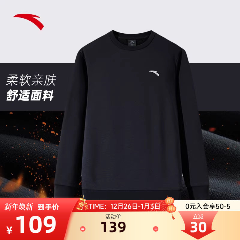 安踏经典运动卫衣男2025冬季新款圆领长袖打底衫正品休闲宽松上衣