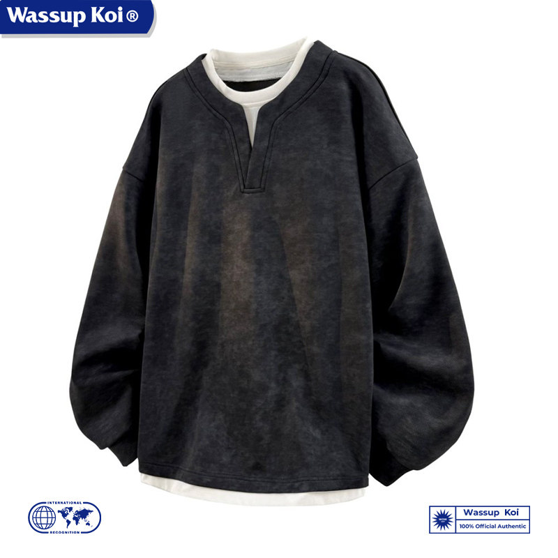 WASSUP KOI假两件长袖卫衣男女秋冬加绒高级感百搭宽松简约打底衫