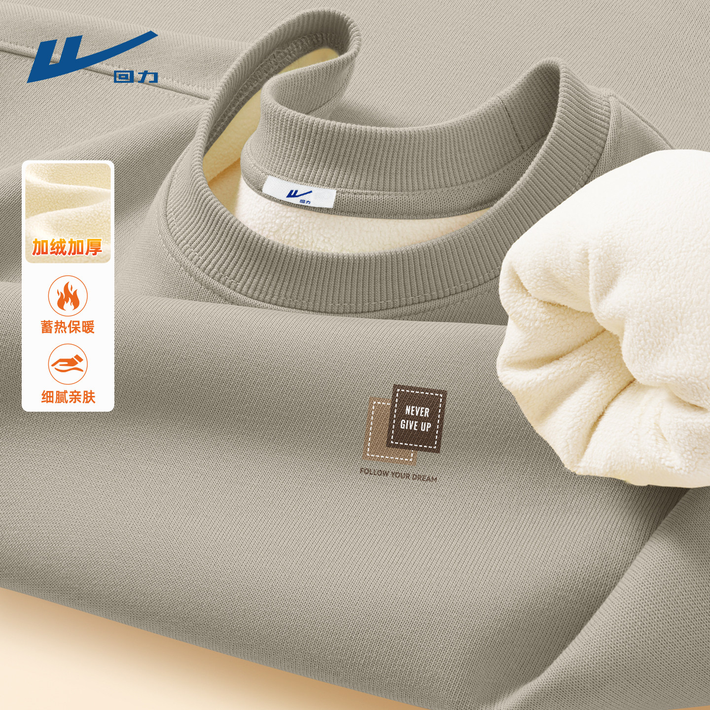 回力加绒卫衣男款圆领无帽保暖男生衣服时尚百搭休闲男士上衣冬C