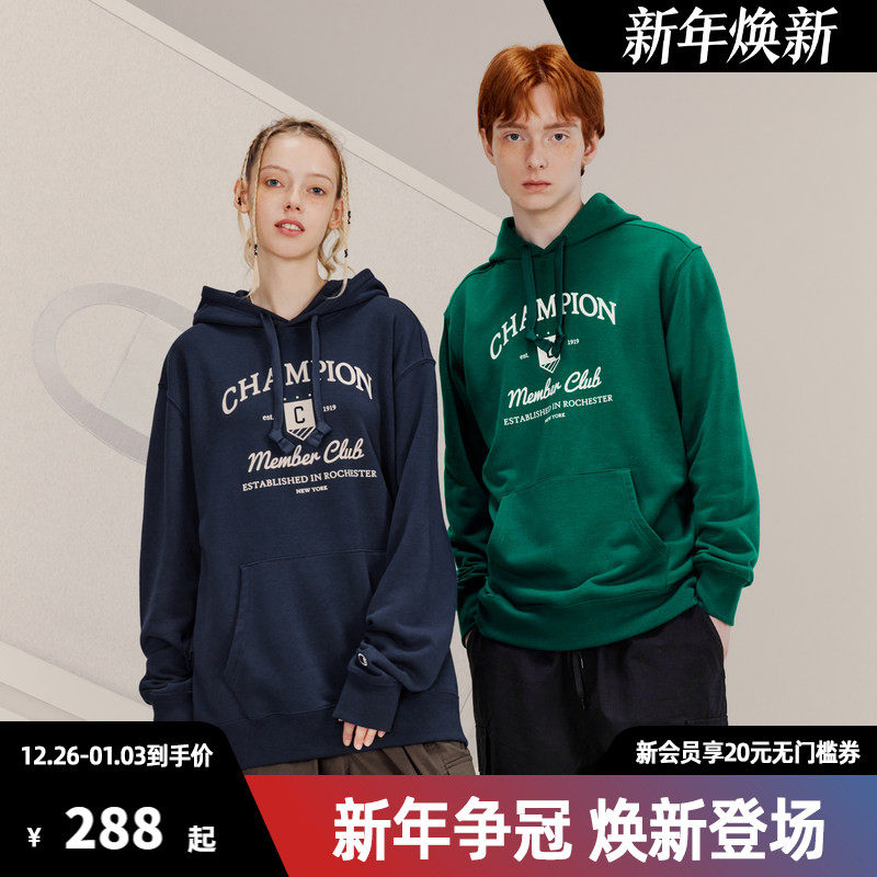 Champion冠军连帽卫衣男春秋新款女刺绣拉链外套潮牌美式复古情侣