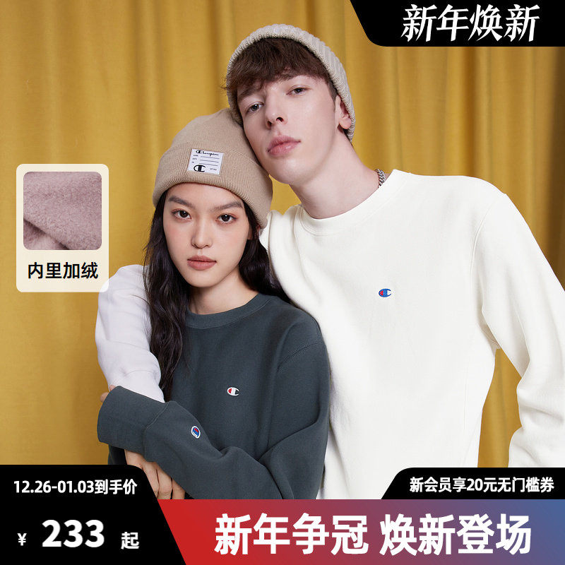 Champion冠军加绒无帽卫衣男保暖上衣美式简约百搭复古休闲长袖女