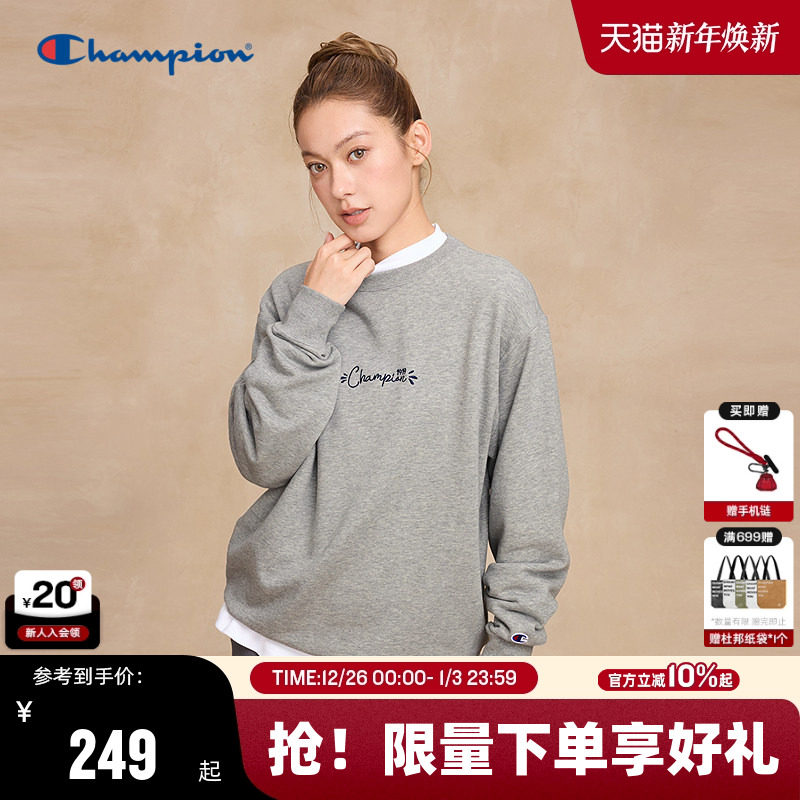 Champion冠军卫衣男2025秋季新款落肩袖宽松圆领打底潮牌校园风女