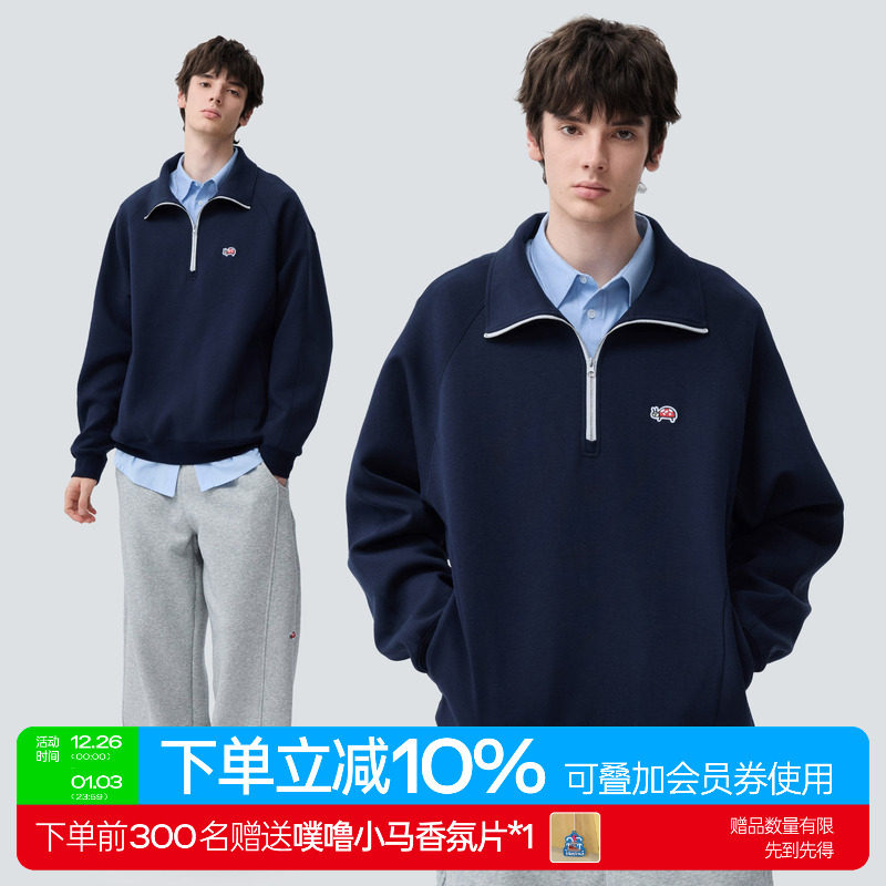 warmtrees 2025新款秋冬树树脆脆乐园瓢虫绣标半拉链空气棉卫衣男