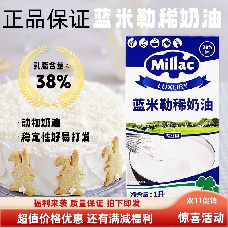铁塔淡奶油1L动物性稀奶油法国进口蛋挞裱花奶油家用专用烘焙原料
